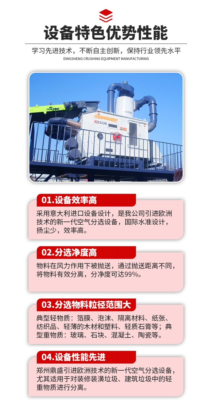 裝修垃(lā)圾風選機是一種利用風力將(jiāng)裝修廢棄物中的可回收物質分離(lí)的設備。它是一種有效(xiào)的自動化設備,能夠大大(dà)提高回收效(xiào)率和減少人工幹預。
