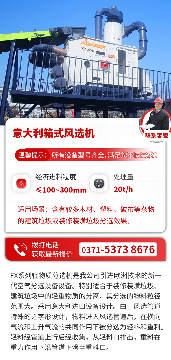 裝修垃圾風選機的基本原理是利用風力將(jiāng)廢棄物(wù)中的輕質物質,如塑料、紙張、木片等物質(zhì)吹起(qǐ),然後(hòu)通過收集裝(zhuāng)置將其收集。同(tóng)時,較重的物質如磚塊、石頭、玻璃等則會沉到機器底(dǐ)部,並通過出口排出。